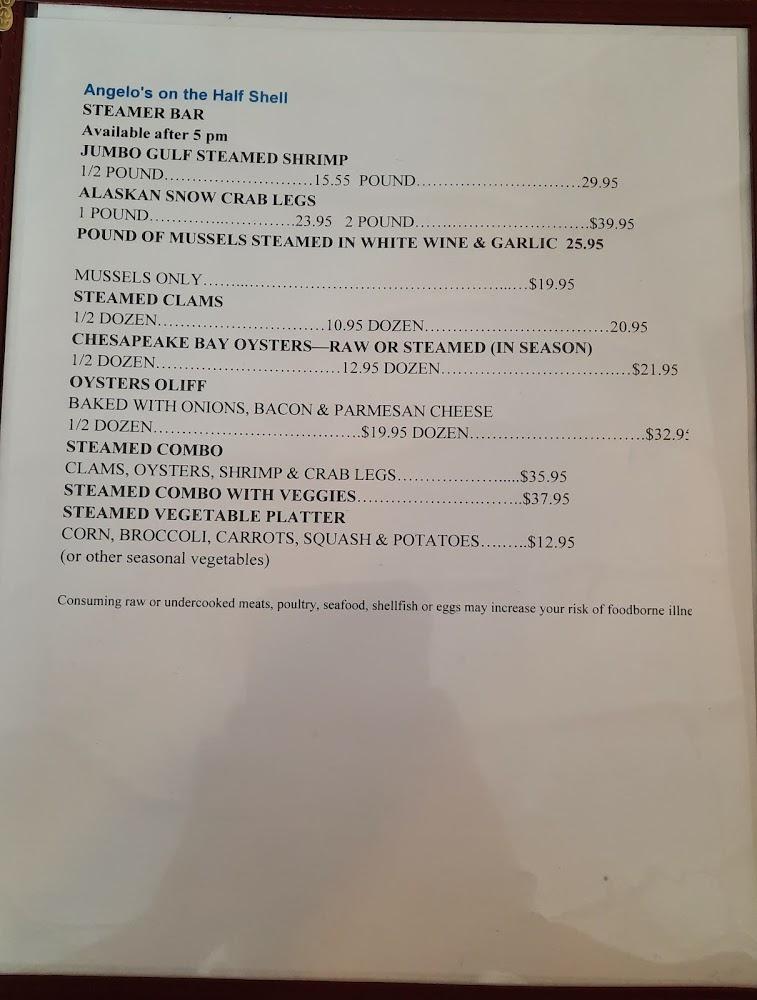 Angelo's menu excels in variety, offering something for everyone. The pizza selection stands out, featuring classic pepperoni and unique specialty pies. The seafood menu is equally impressive, showcasing local favorites like jumbo Gulf Stream shrimp and Chesapeake Bay steamed oysters. For those wanting lighter options, delightful salads and shareable small plates are available.