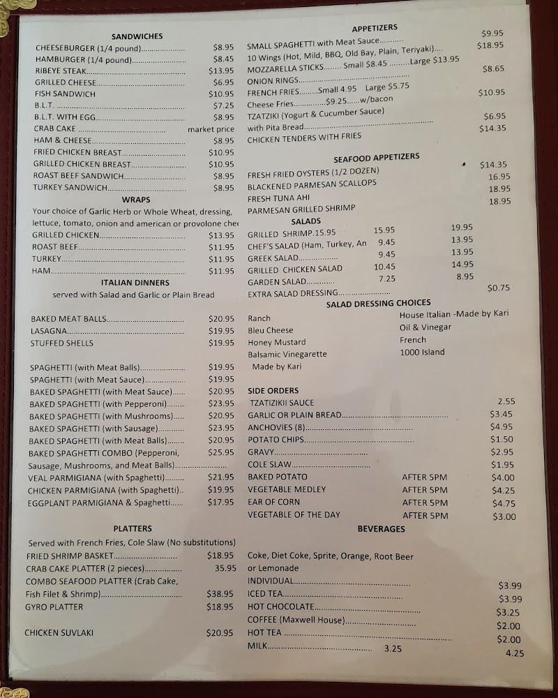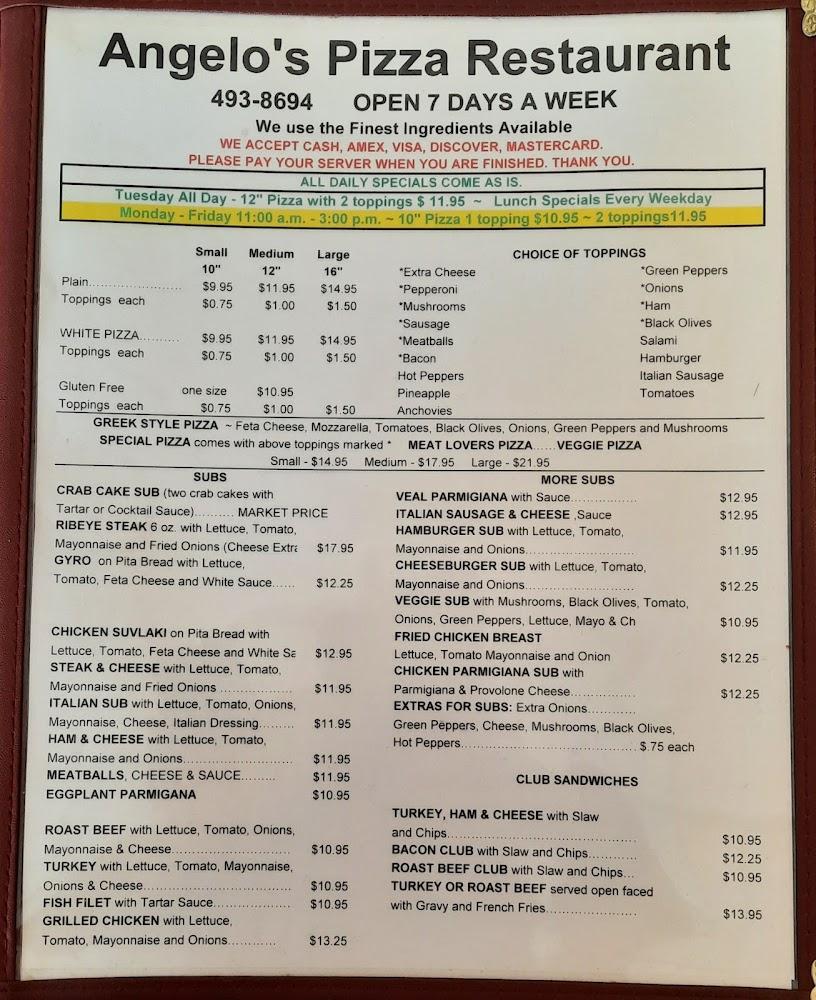 The menu also includes hearty pasta dishes like the popular seafood spaghetti and chicken tenders for the kids. Drinks range from classic beers to diverse wines perfect for pairing with meals. Overall, Angelo's balances comfort food with local flavors, making every visit a flavorful celebration.